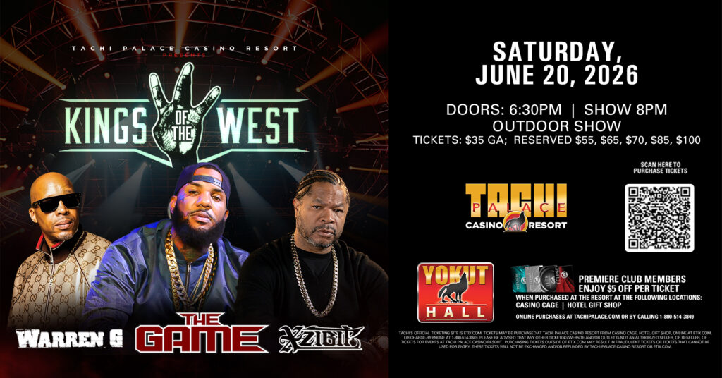 Tachi Palace offers all this entertainment and more! Order your tickets and come for your favorite events — and think about booking a luxurious, relaxing staycation at our beautiful hotel to complete your trip.